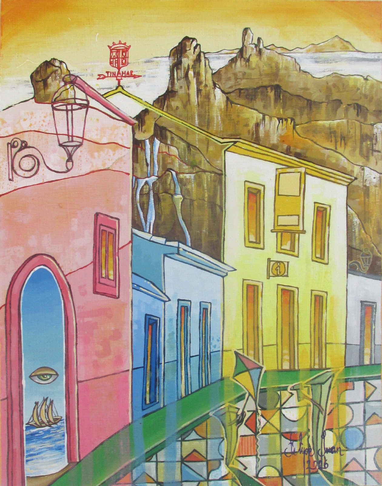 Felipe Juan, fiel al poeta, pinta en el mismo plano su visión particular haciendo imagen lo que antes eran palabras encadenadas por los sentimientos, con la misma simbología espiritual, con la misma mística, con esa visión casi religiosa que parece imponer “mi ciudad” y que el pintor refleja con una simbología tan clara como atractiva…»